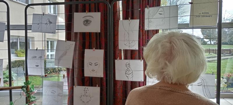 Nous accueillons une exposition de dessins dans notre espace de vie de la Tourelle d’Argent en cafétéria. Ces esquisses sont réalisées par Alexia, aide-soignante en apprentissage. Chaque résidente et résident a pu s'exprimer sur son dessin préféré et sur ce qu'il a évoqué dans leur cœur.